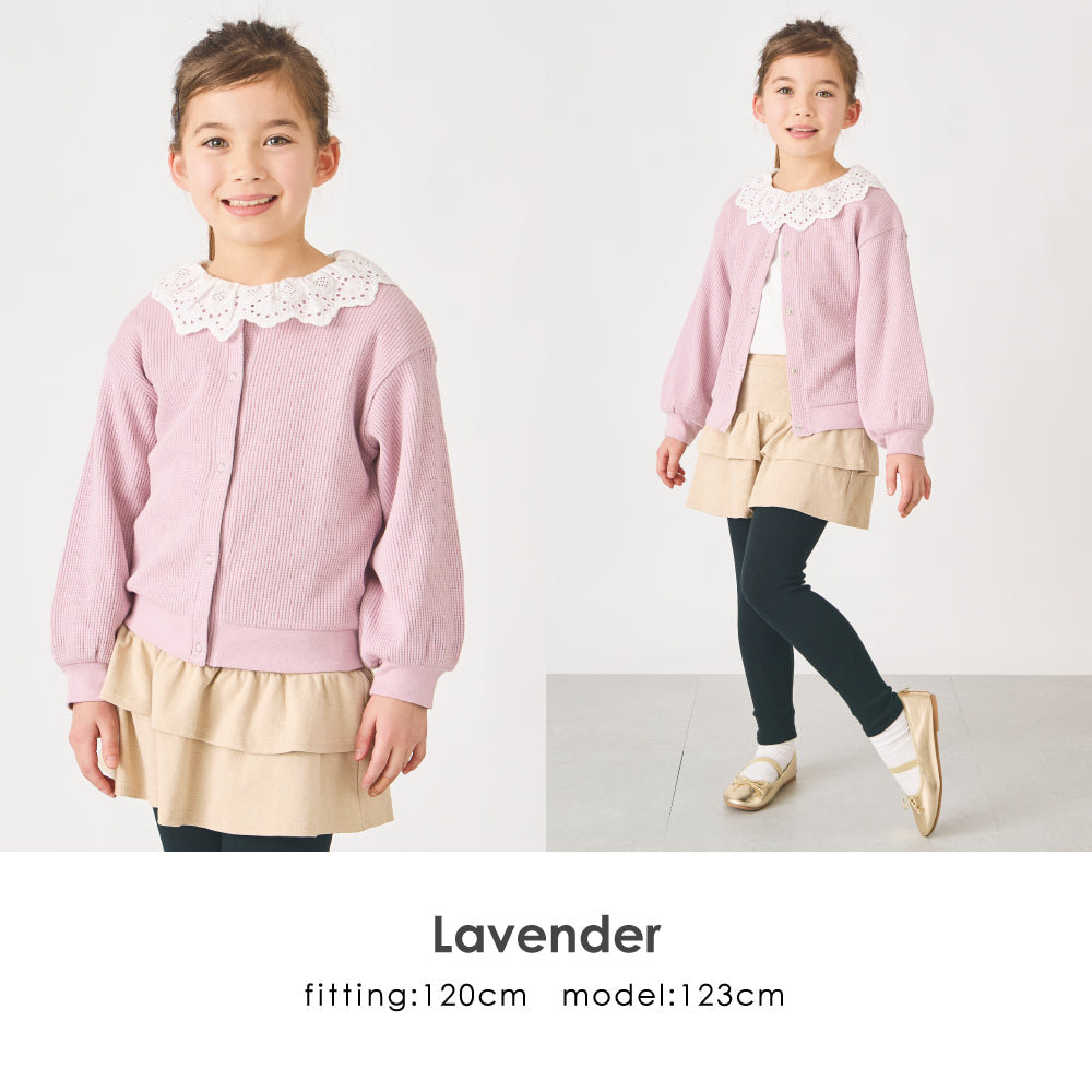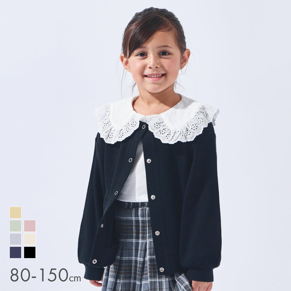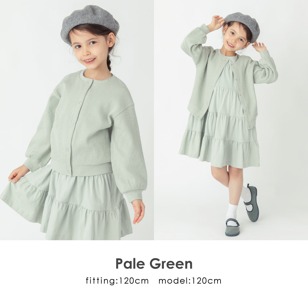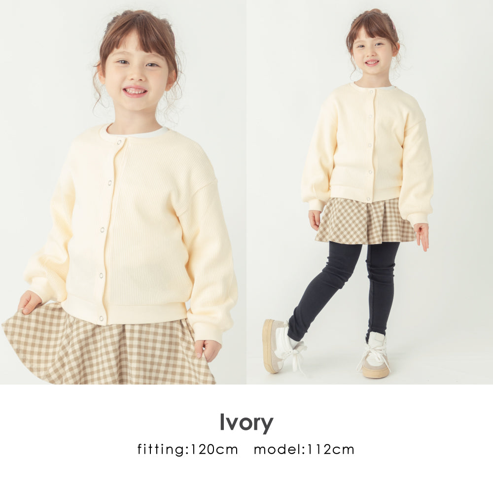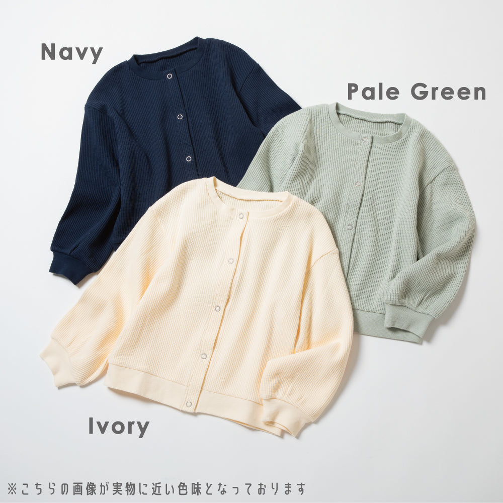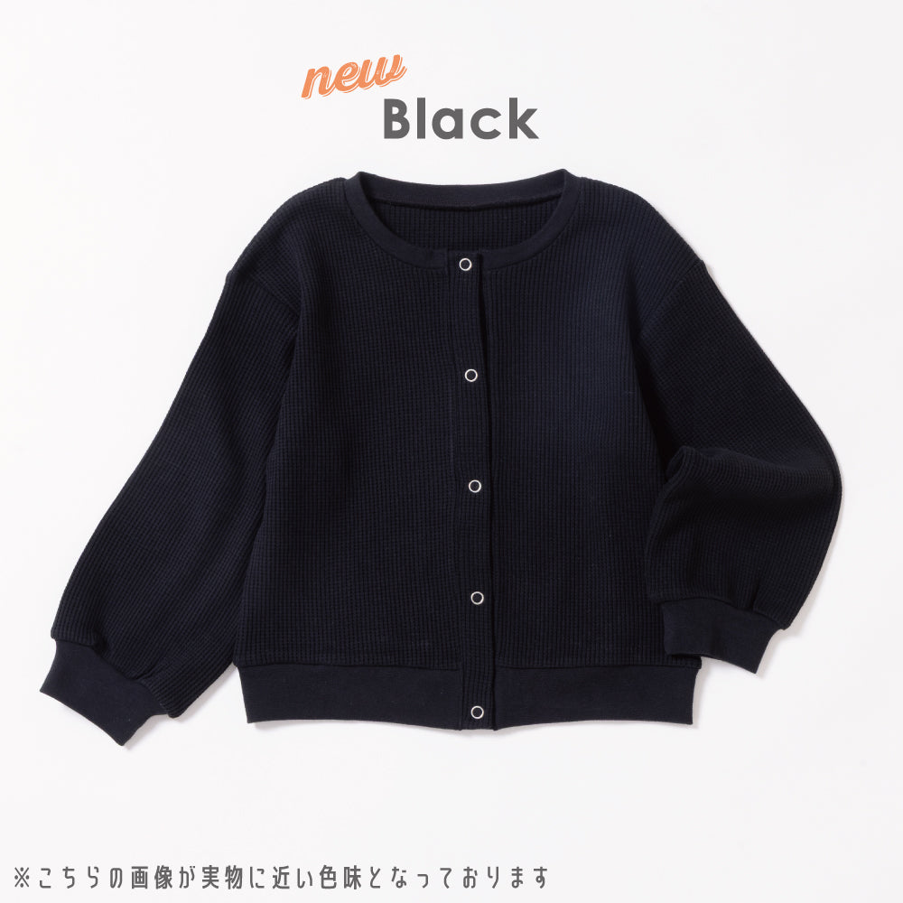 シルバーリングで上品な印象に。スナップボタンだから1人でのお着替えも楽々です♪ そしてややボリュームのある袖は横から見てもぽえワンとしたシルエットで可愛さUP! 袖口は腕まくりができるリブ素材を活用。手を洗う時、ご飯を食べるときも心配ない安心仕様です。