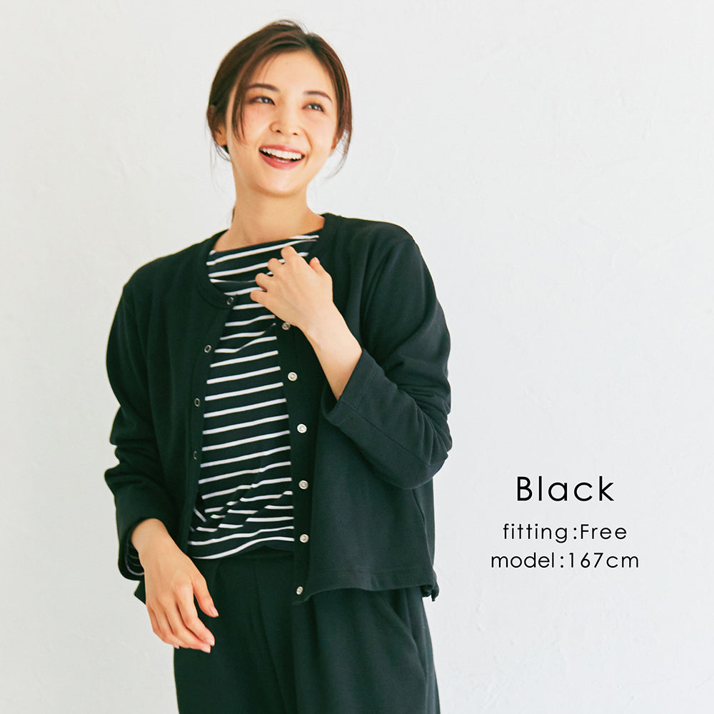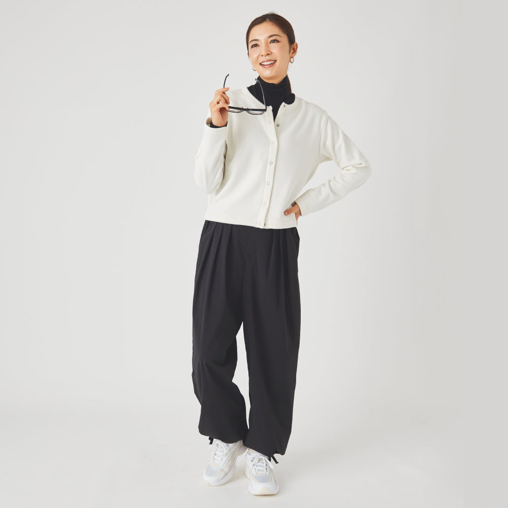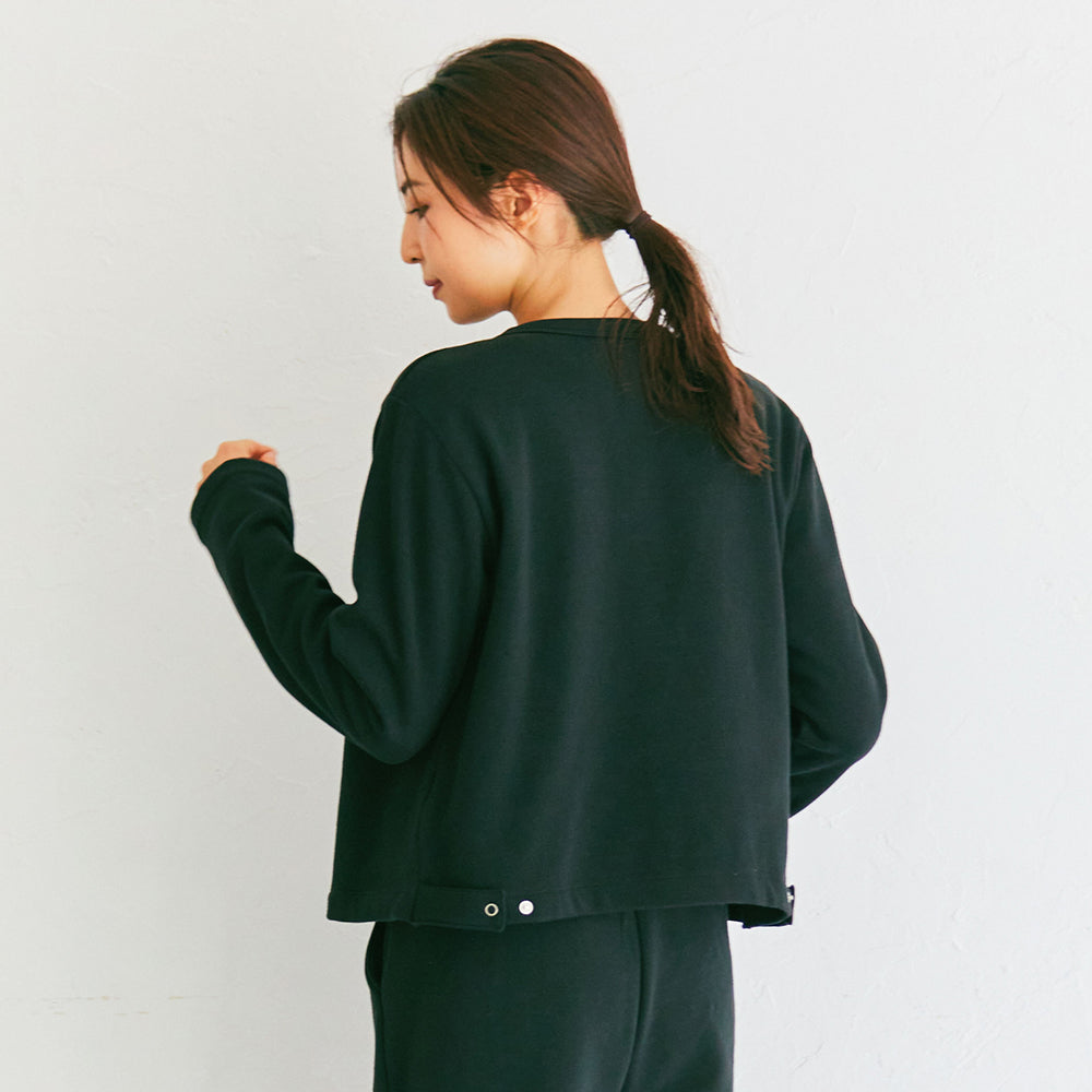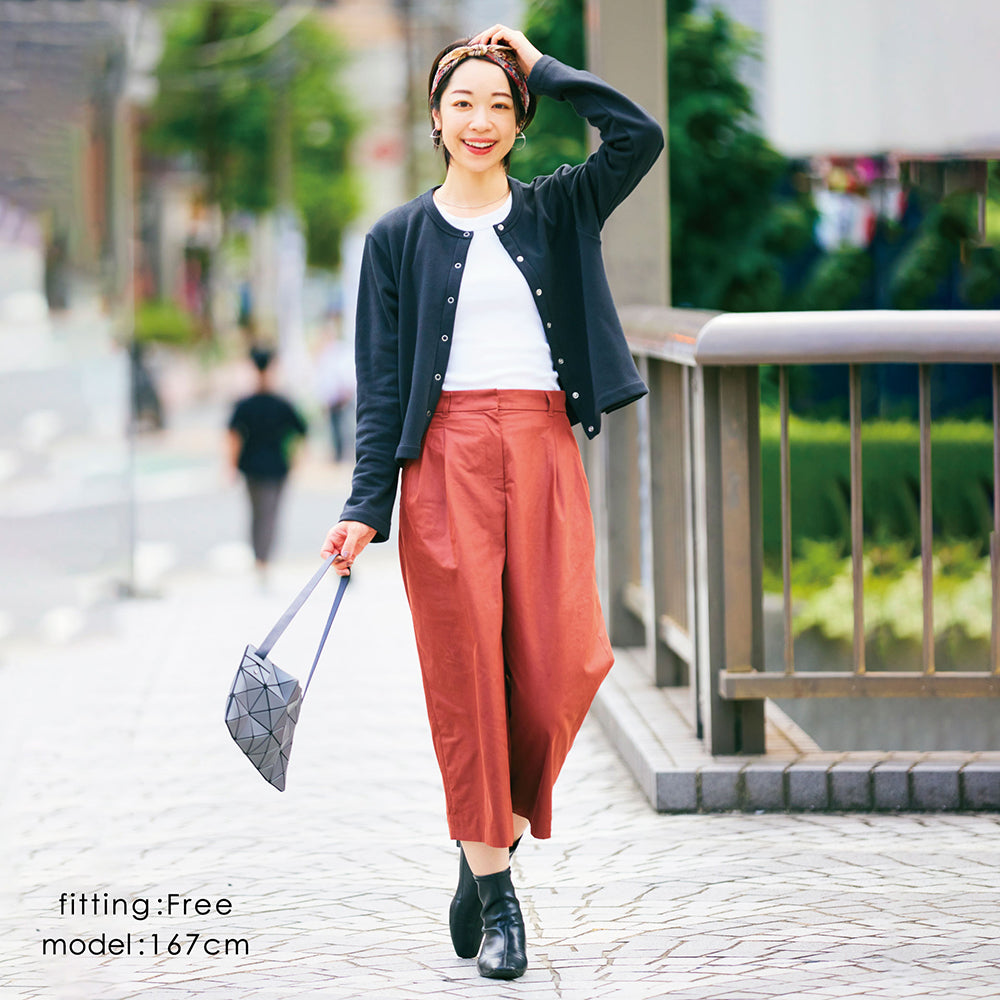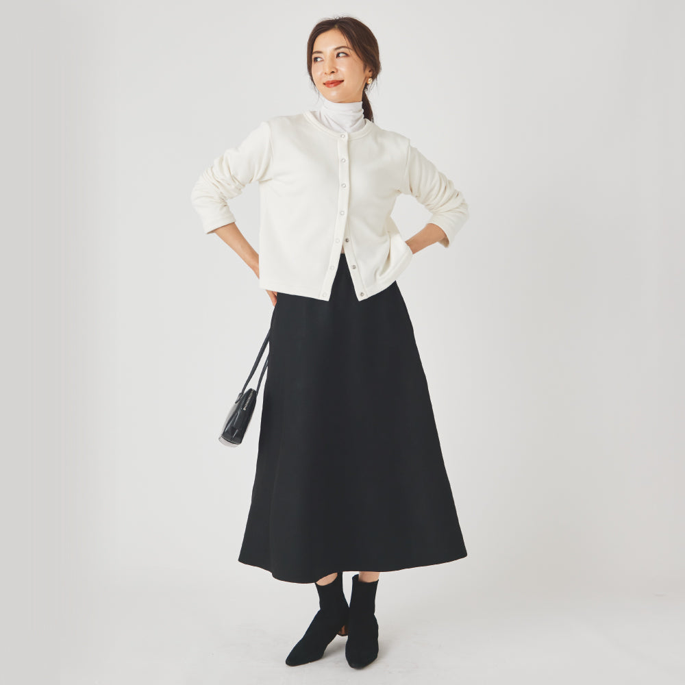 あたたか裏起毛でカジュアルにもきちんとしたシーンでも使えるデザイン。サイドのスナップボタンで身幅を変えれるのがうれしい。長く使いたいです!