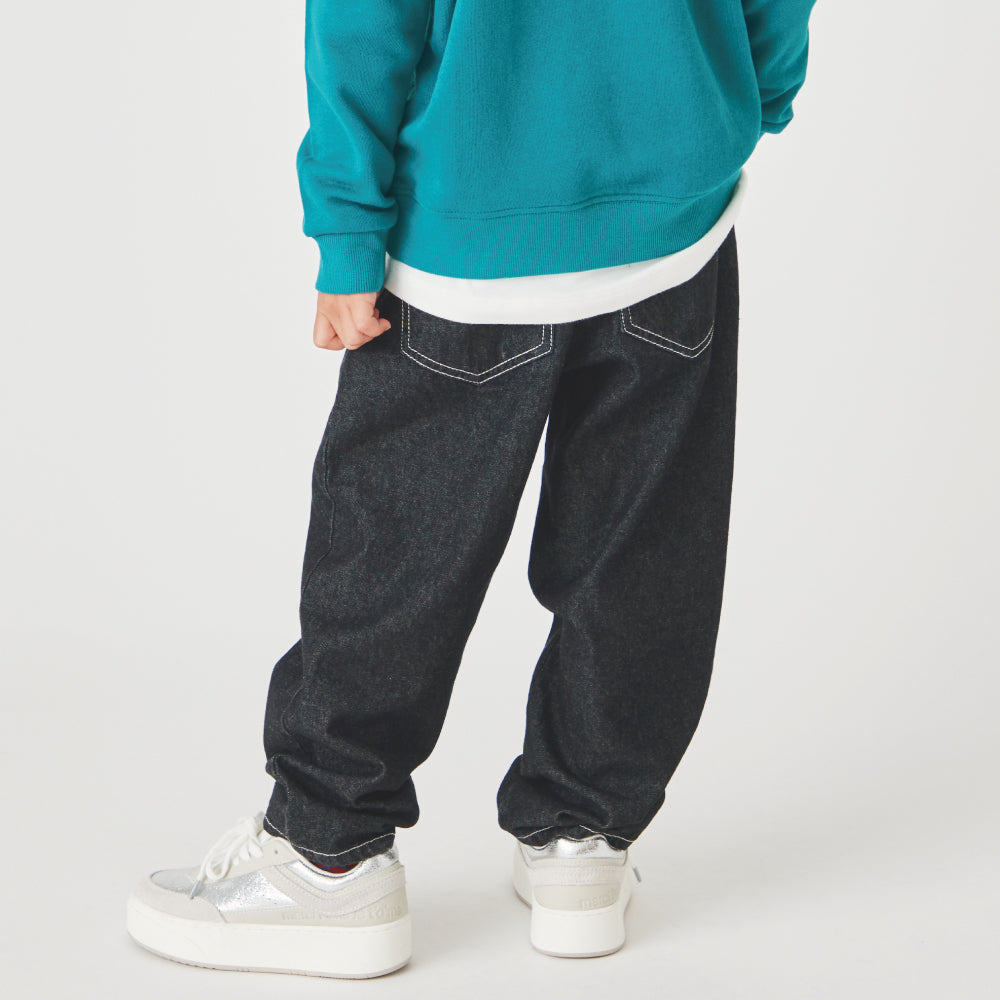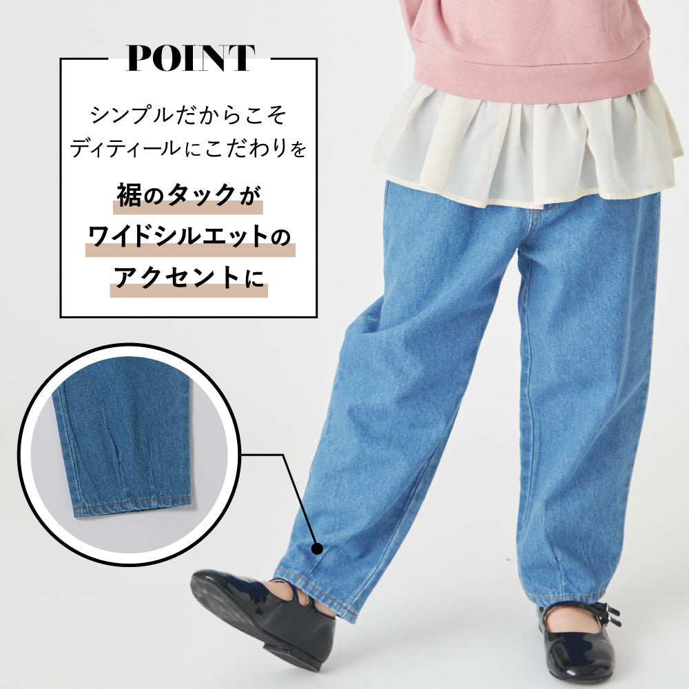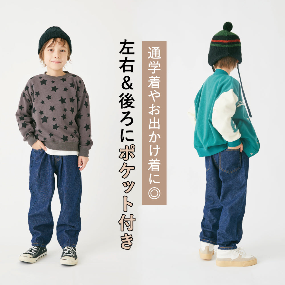 シンプルだからこそディテールにこだわりました♡裾のタックがワイドシルエットのアクセントになっており、ダボっとした印象ではなくスタイリッシュな印象にしてくれるポイントです。左右&後ろにポケットが付いているので、通学着・通園着にもお出かけ着にも便利♪