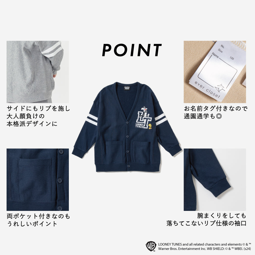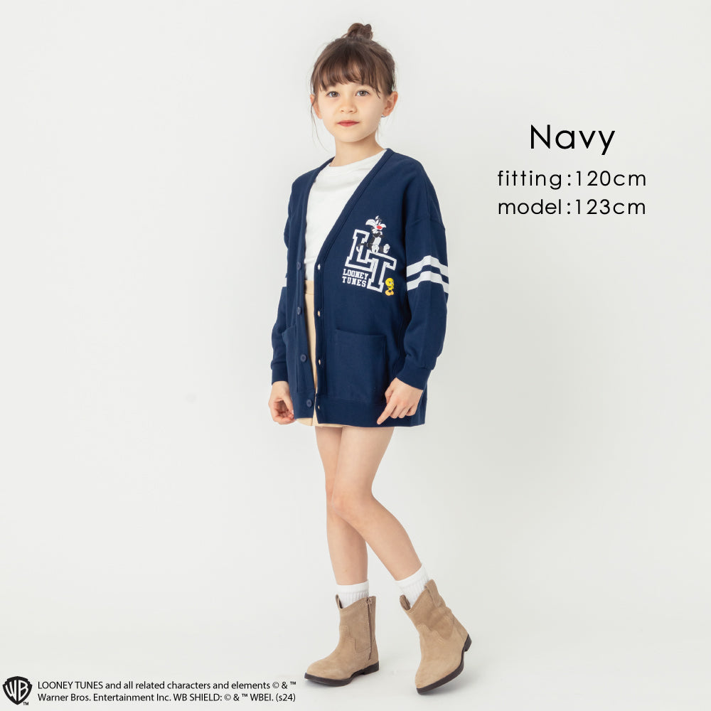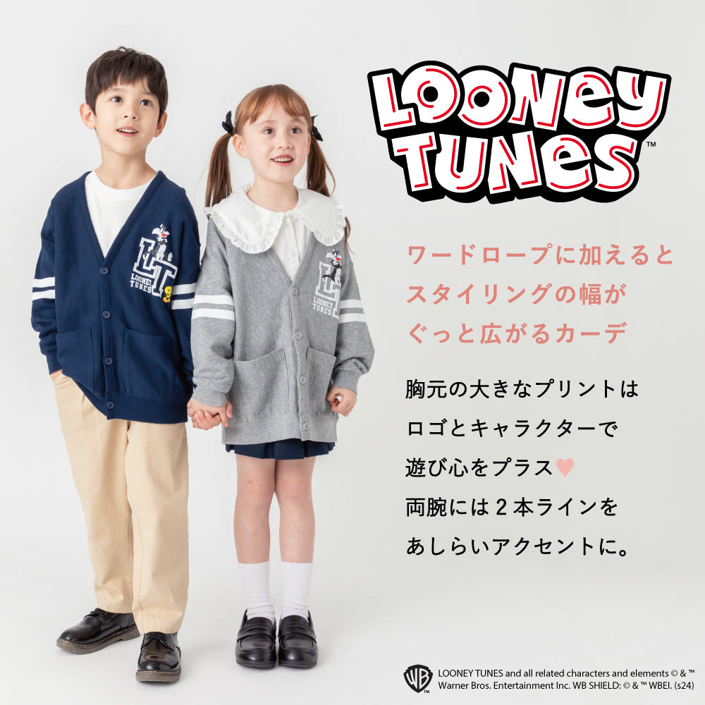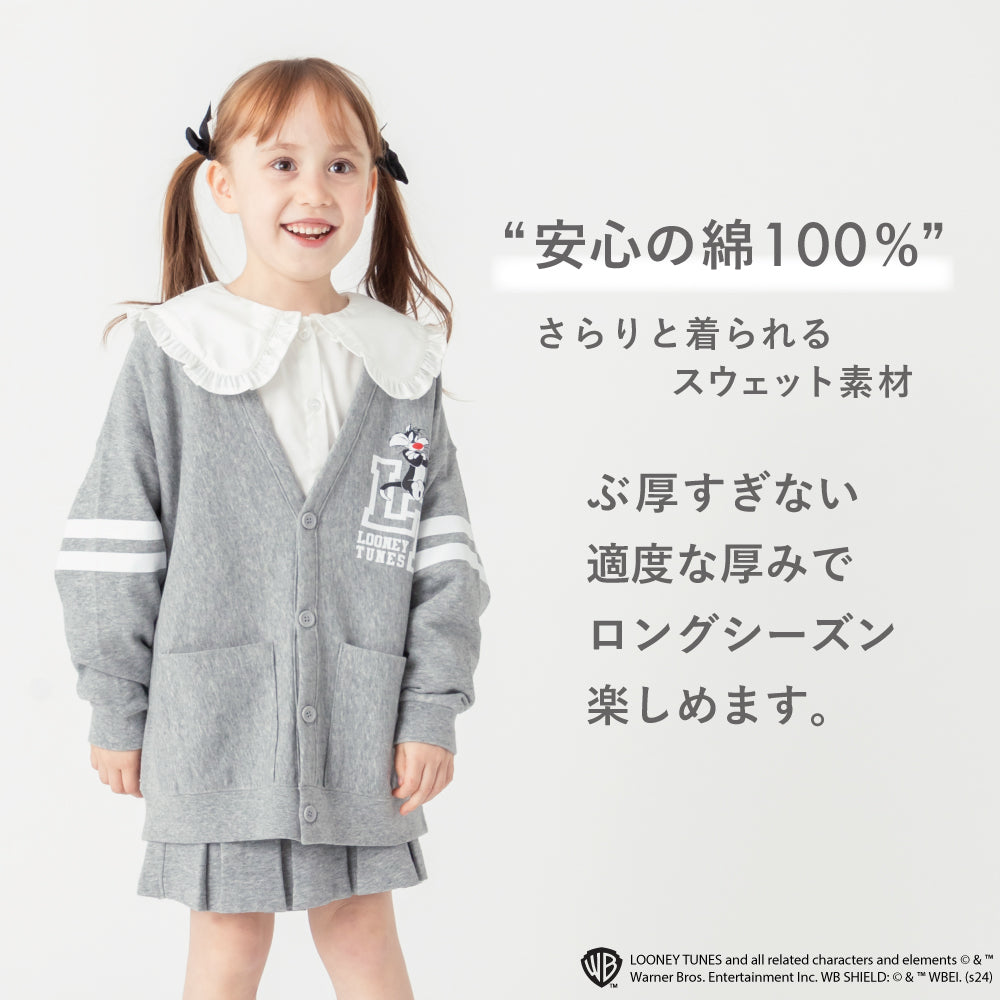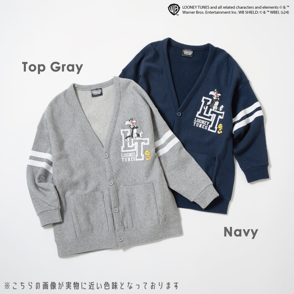 こちらのカーディガンにはいつも手の込んだ作戦を企んでは、失敗を繰り返す"シルベスター"と大きな青い瞳とかわいい声の、一見愛くるしいカナリア、実はなかなかのやんちゃ者"トゥイ―ティー"のおなじみコンビがプリントされています。