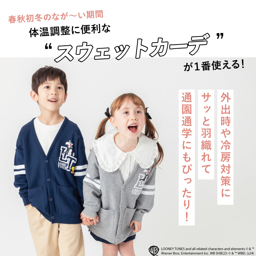 ワードローブに加えるとスタイリングの幅がぐっと広がるカーディガン。外出時や冷房対策にさっと羽織れて通園通学にもピッタリ。