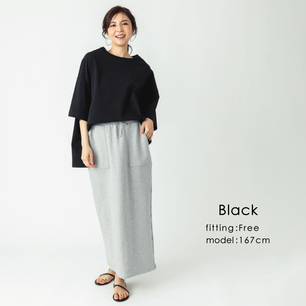 身体が泳ぐゆったりとした身幅。気になる身体のシルエットをさりげなくカバーしてくれます。