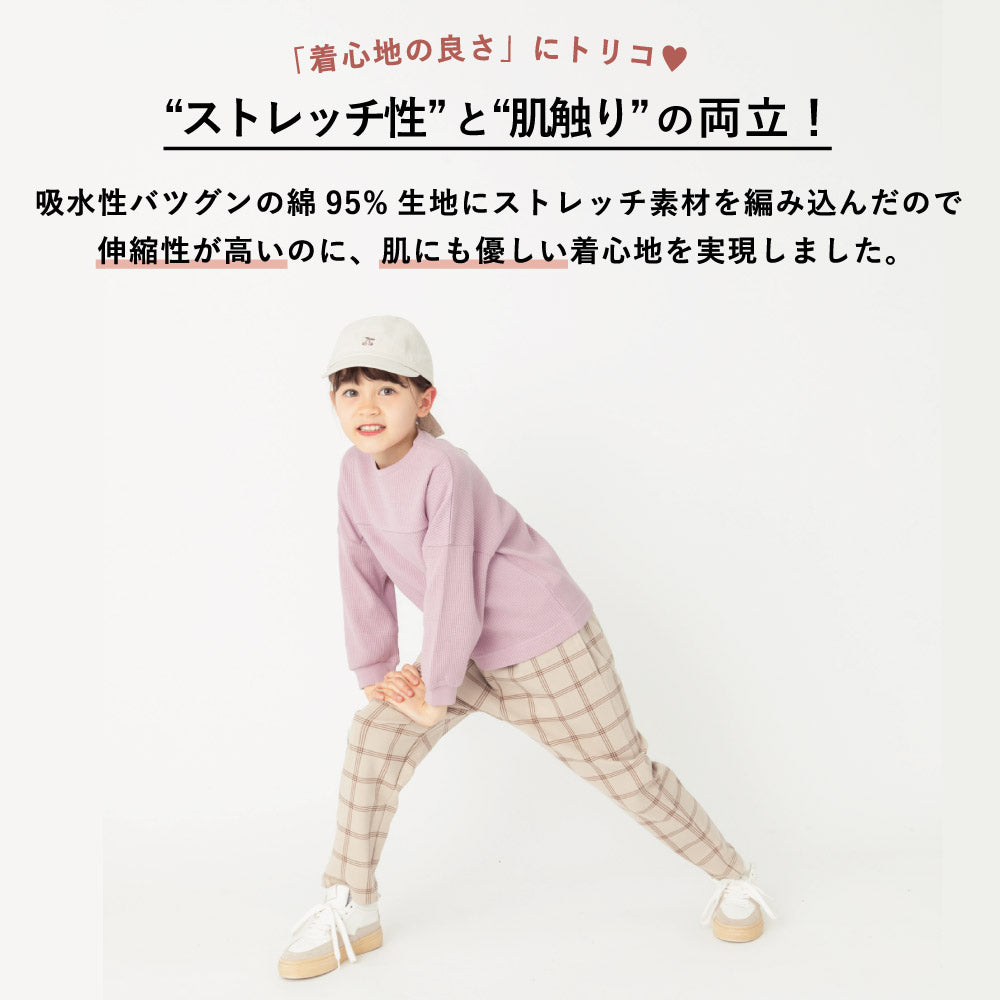 いろんなトップスに合わせやすく、ユニセックスで楽しめるカラーバリエーション。兄弟姉妹でのおそろコーデも◎