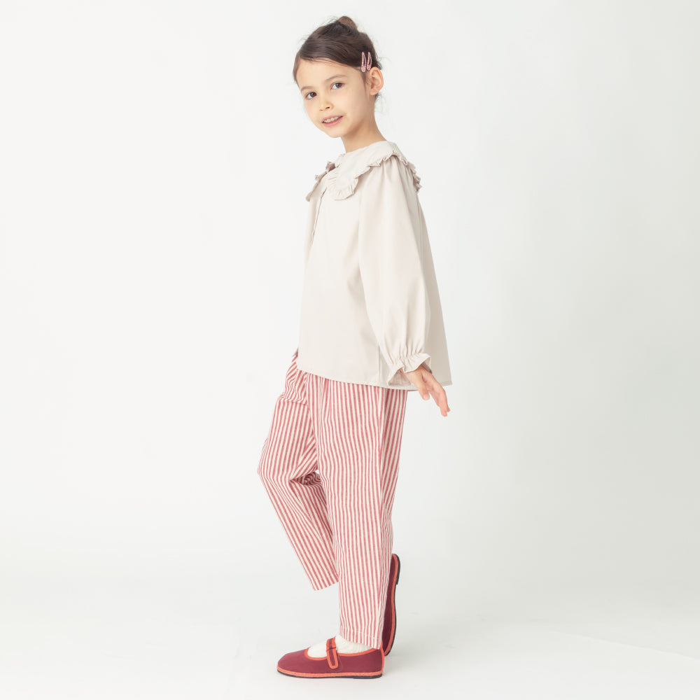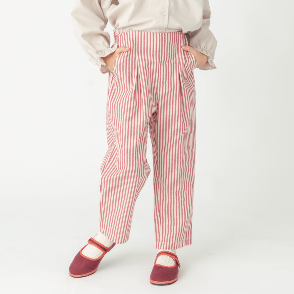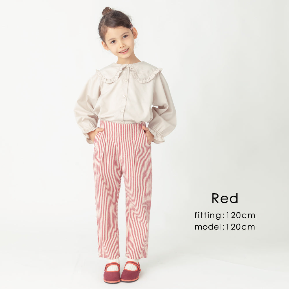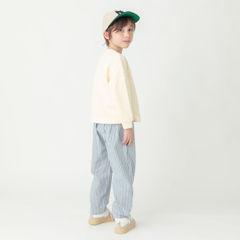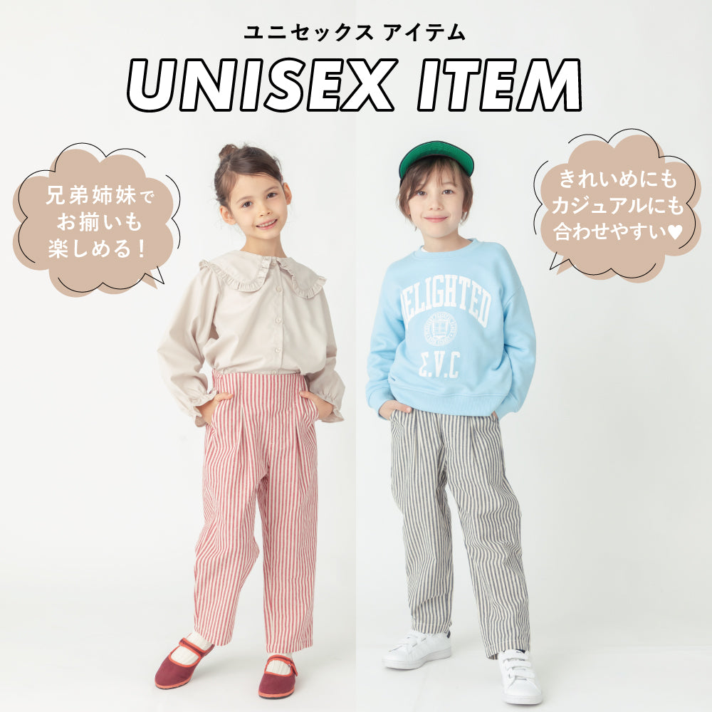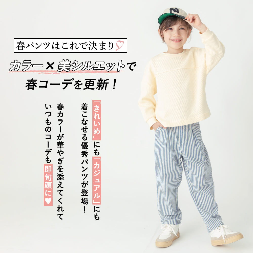 ゆとりシルエットかつクロップド丈がトレンド感を演出。ハイウエスト×フロントに入ったタックで脚長効果も抜群です!両サイドにポケットもついているので、通園着・通学着としても使いやすくハンカチやティッシュももちろん持ち運べます。内側にはお名前ネームもついているので幼稚園・保育園でも安心な1枚です。