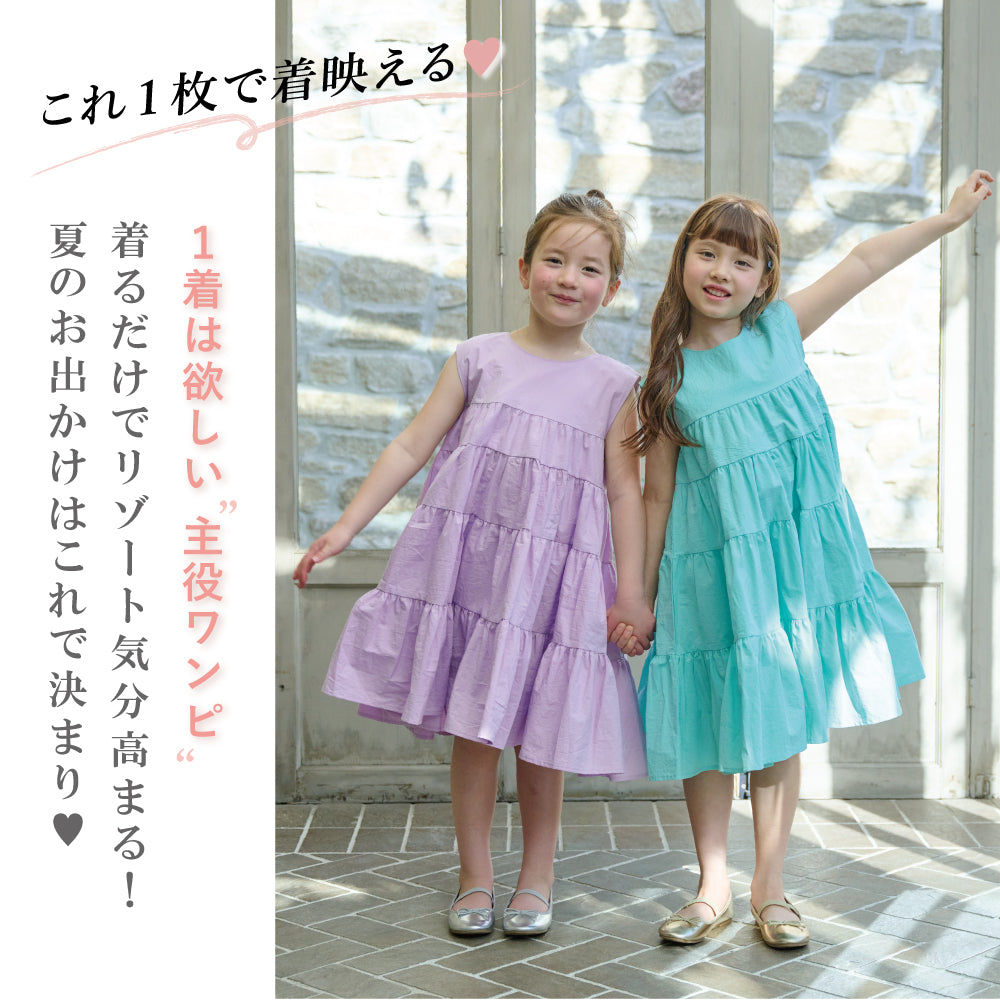 【ふわっと広がる上品ワンピ】ティアードワンピース