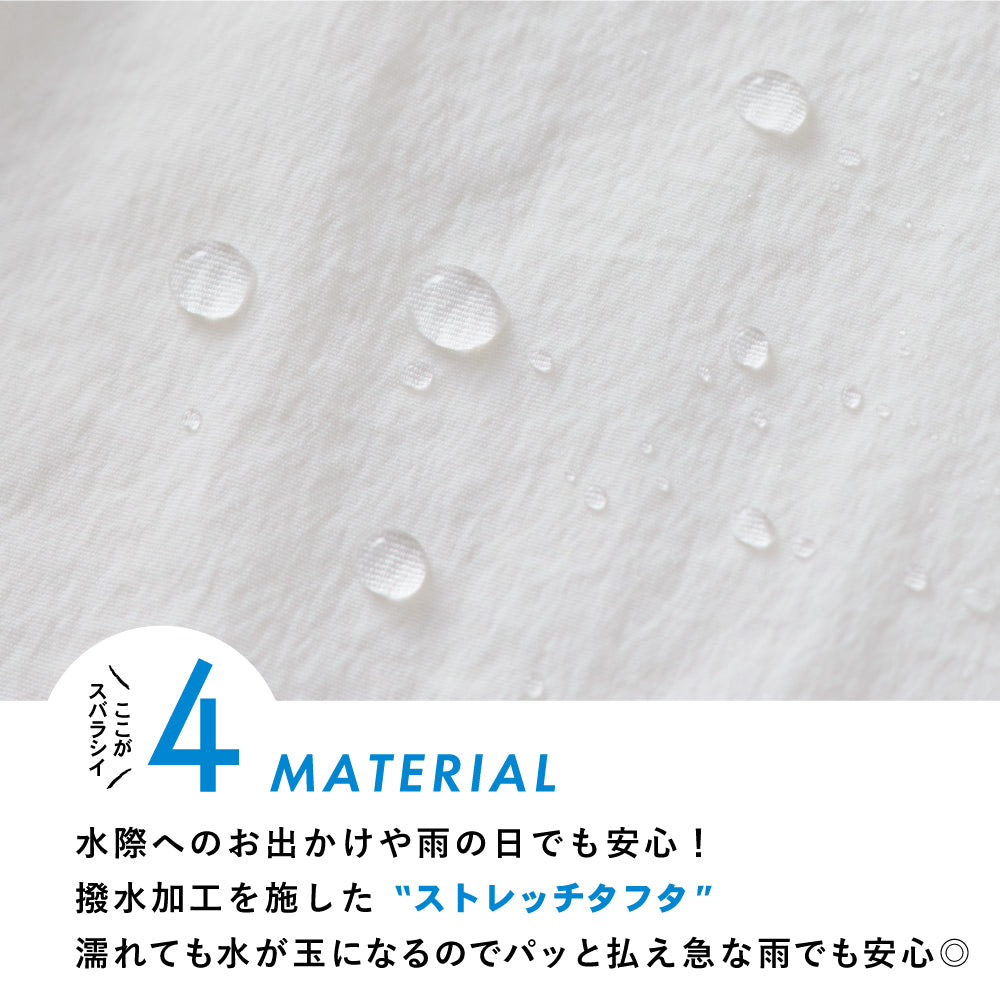 いままで雨といえば汚れを気にしてボトムは暗い色しか履けなかったのに、堂々と白が履ける、というのが自分の中ですごく新鮮でうれしいです!