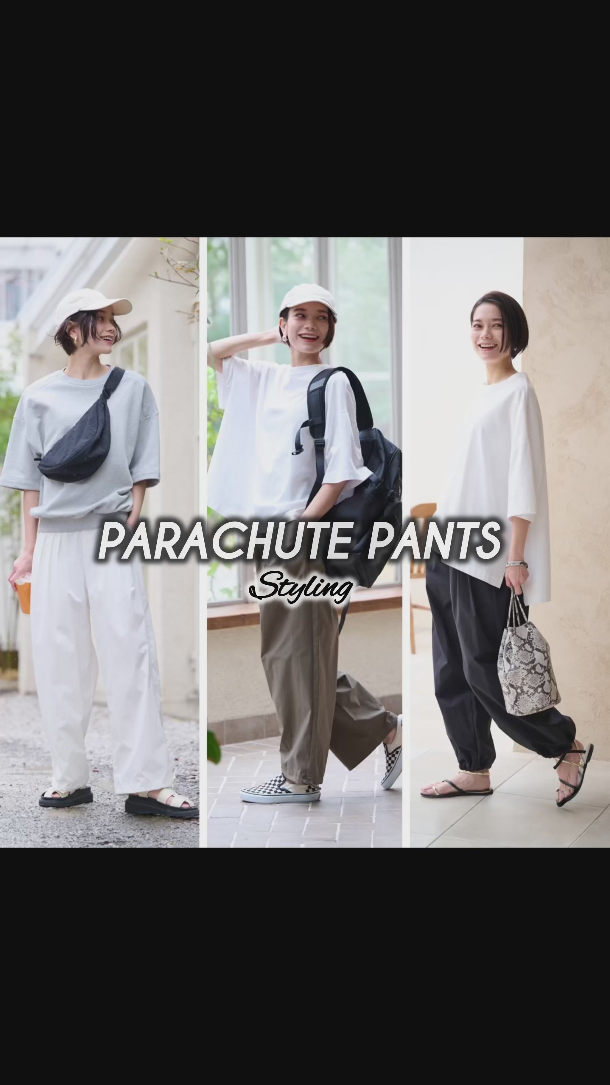 とかくワイルドになりがちなパラシュートパンツですが、ほど良き太さと裾の調整でいかようにも着こなせます。白を選んだのですが、透けることもなくヘビロテ決定です!