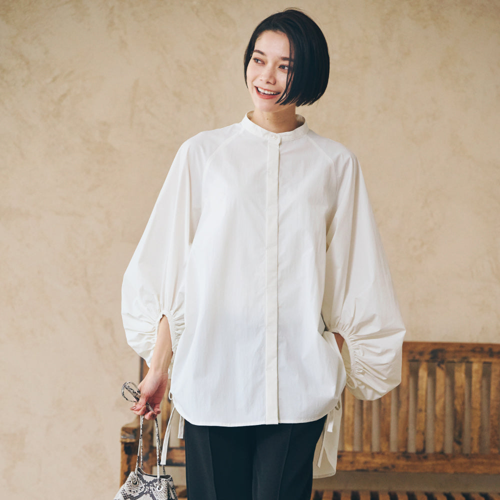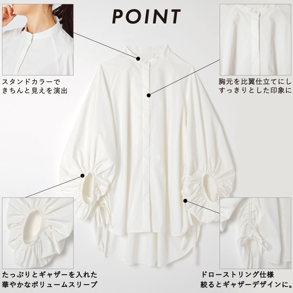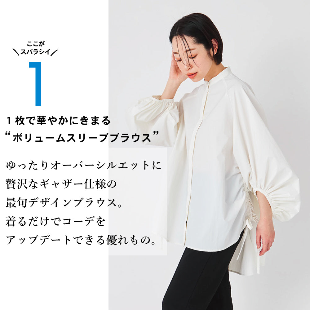 ゆったりオーバーシルエットに贅沢なギャザー仕様の最旬デザインブラウス。