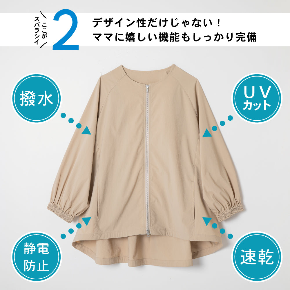 はっ水なので雨の日の外出に丁度いいです。シワになりにくいので、旅先に持っていくのにも良さそうです。ちょっと短めの袖でとてもかわいいです。