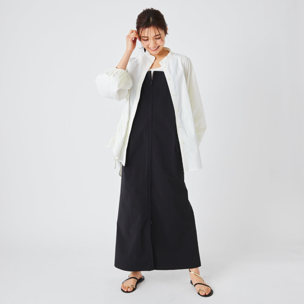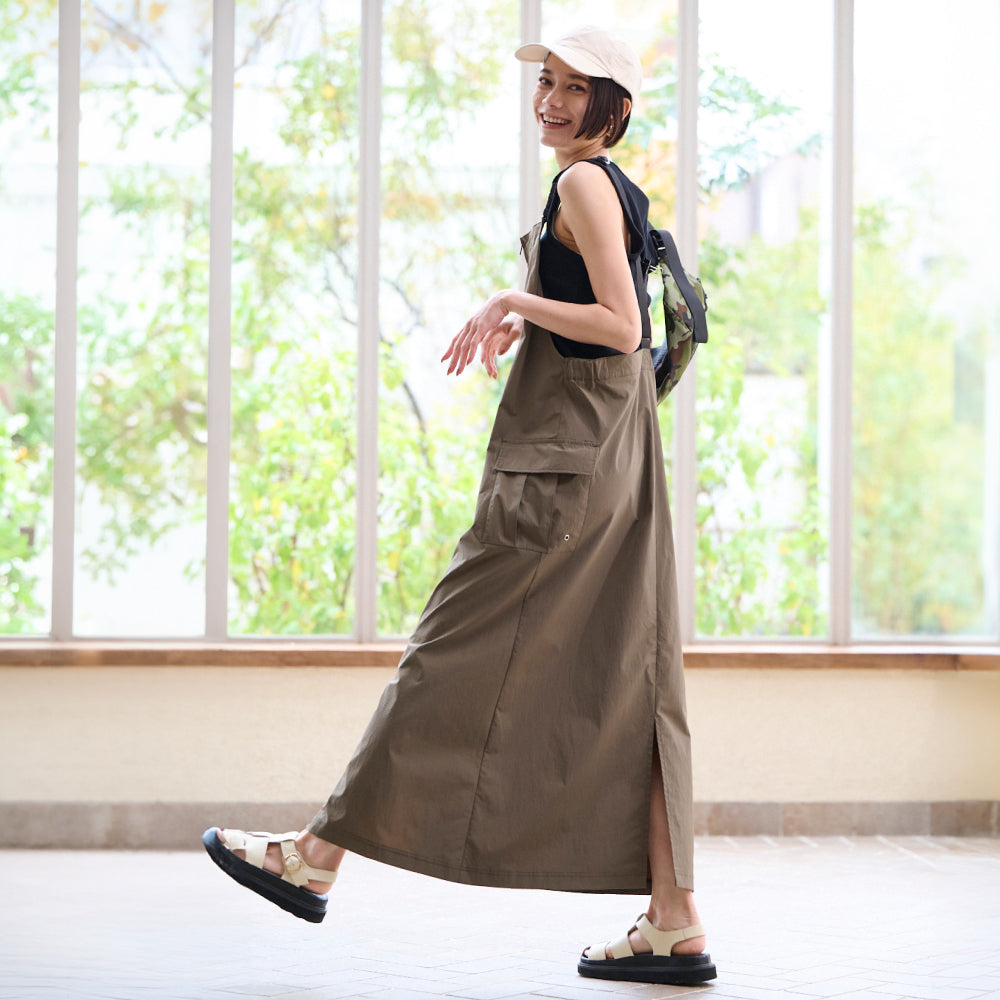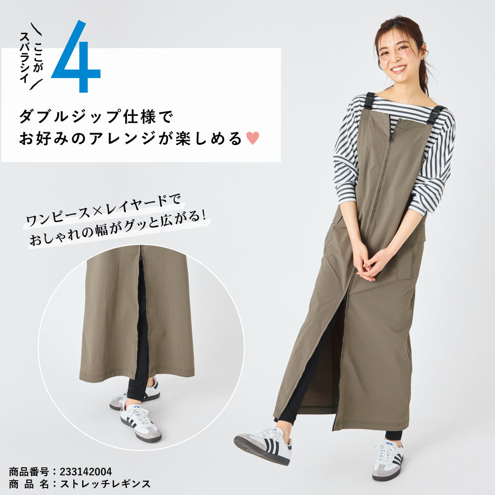 一瞬、ワンピの幅が狭いようにみえたのですが、着てみたら全然大丈夫でした。生地に伸縮性もあって動きも邪魔しないからかなり快適です!小走りとか大股で歩いたりしがちなので、タイトスカートは足さばきが気になってしまうタイプなのですが、このワンピは全く気になりませんでした。