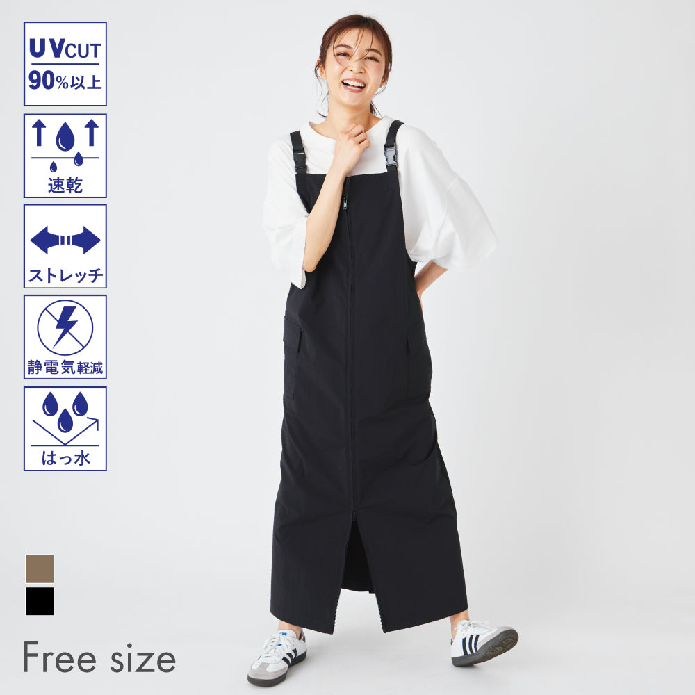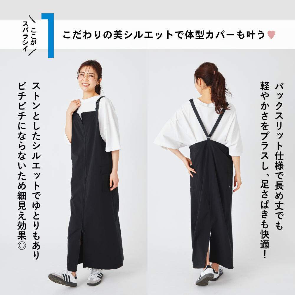 カーキを買いました。軽いシャカシャカの素材で着心地がいいのと、デザインがかわいいのでこれからの梅雨の時期に使いやすいです。スリットが入っているので動きやすいです。