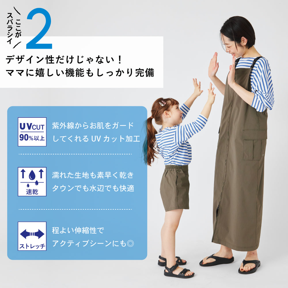 伸縮する生地だからか、すごく動きやすいです。子供と鬼ごっこしたり遊んだりする時も動けました!