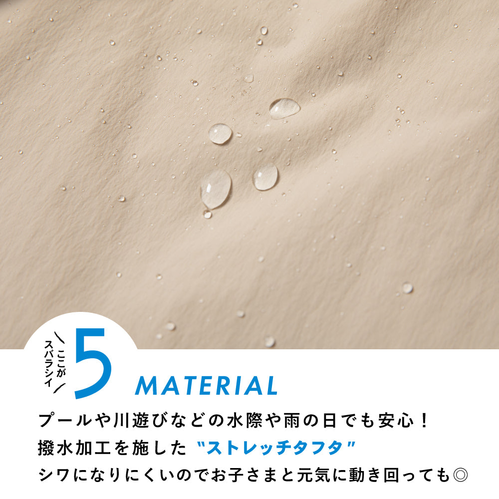 ポケットがしっかりあって、はっ水で汚れも付きにくそうだし、前が全部開くから着替えやすそうだしで、キャンプにもバッチリでした! -