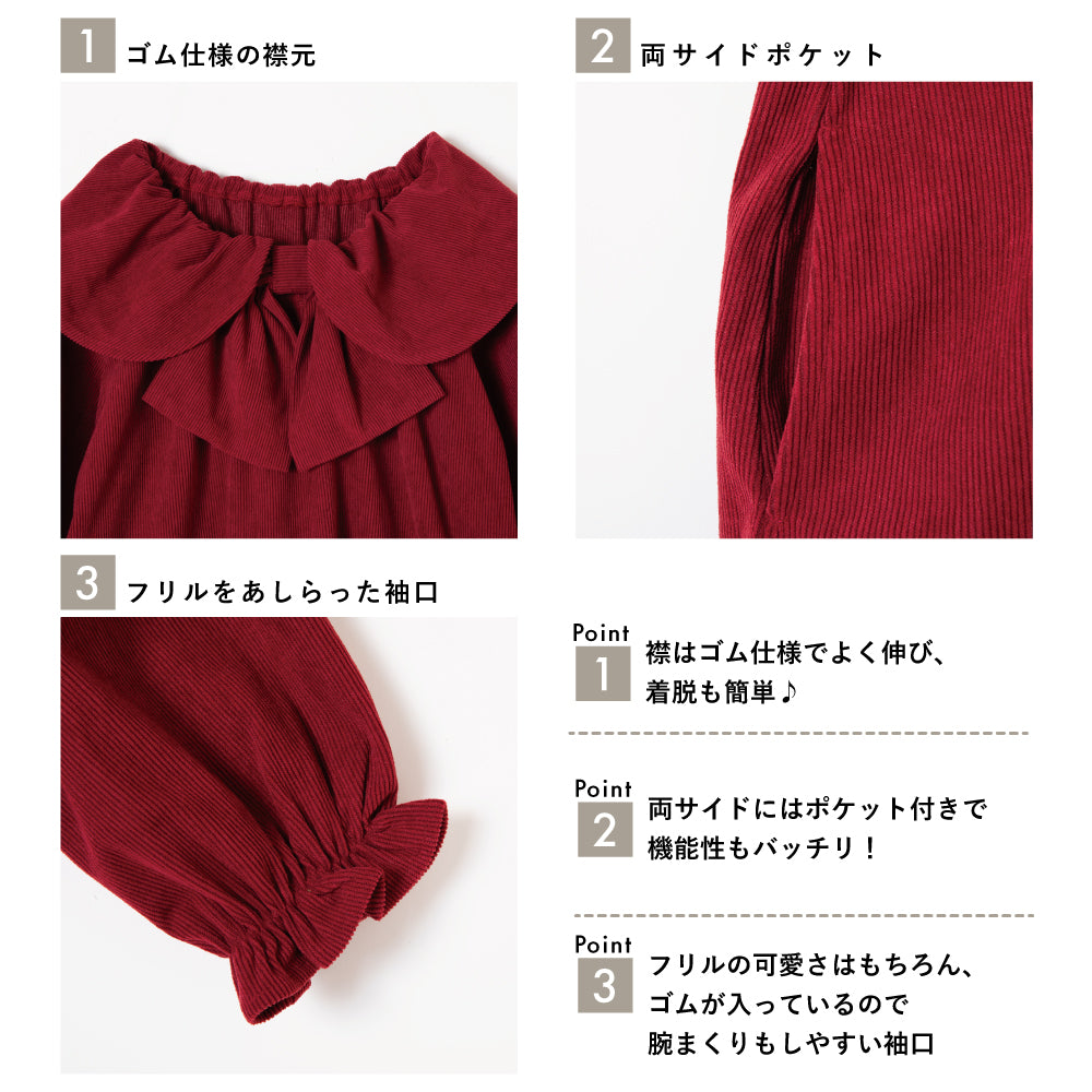 お出かけにぴったりなワンピースだと思います。襟がとにかく可愛くて、色も深みのあるレッドで私好みでした。