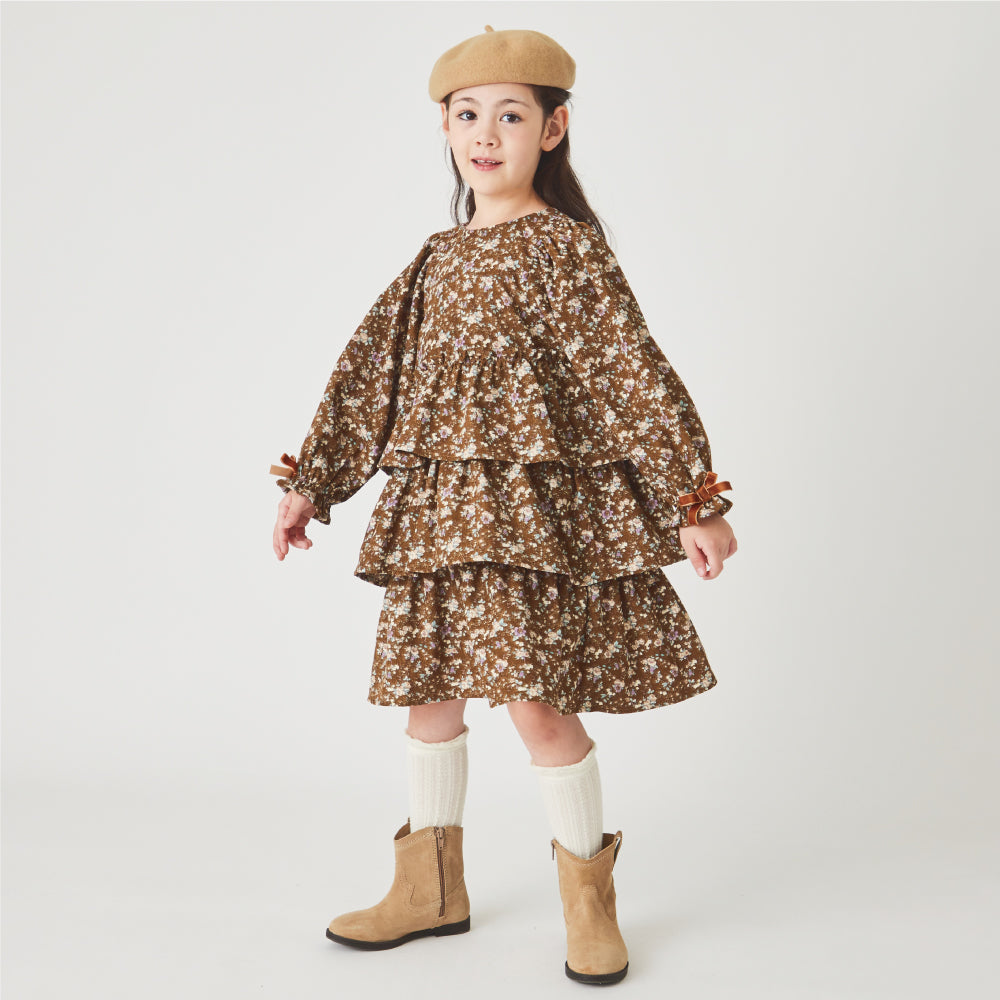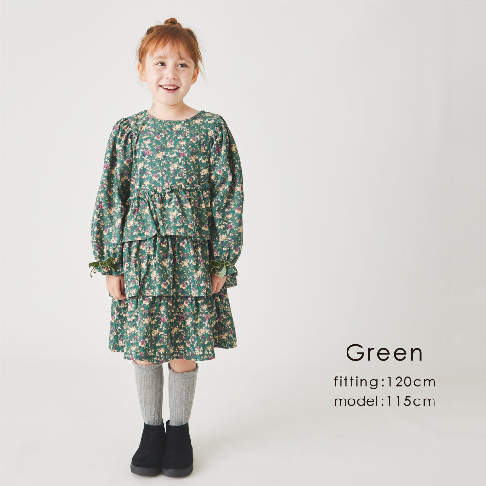 花柄 コーデュロイ ワンピース