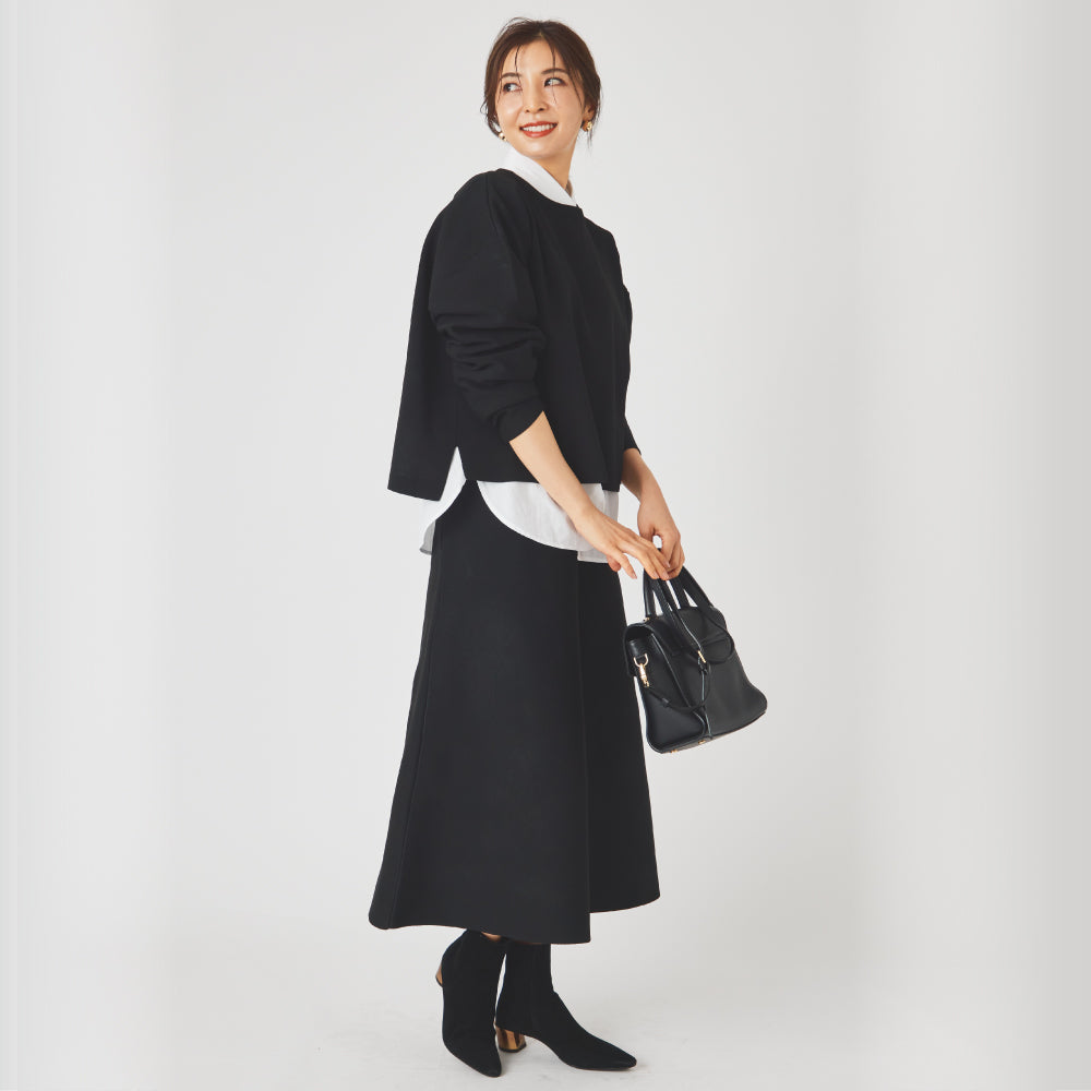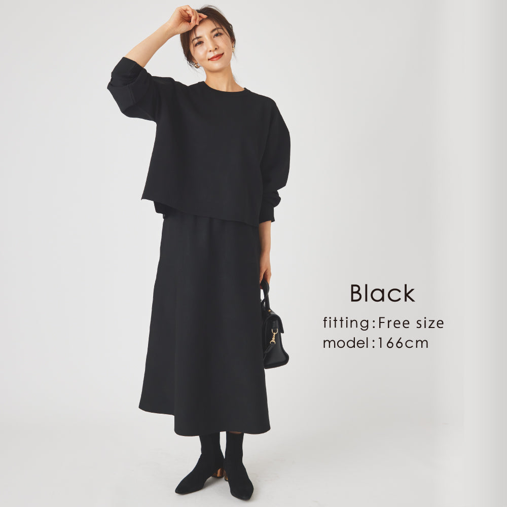 FreeSize(38相当) 【トップス】 総丈(前)51.5 総丈(後)54.5 肩幅58.0 胸囲58.0 袖丈48.5 【スカート】 総丈79.0 ウエスト34.0 |