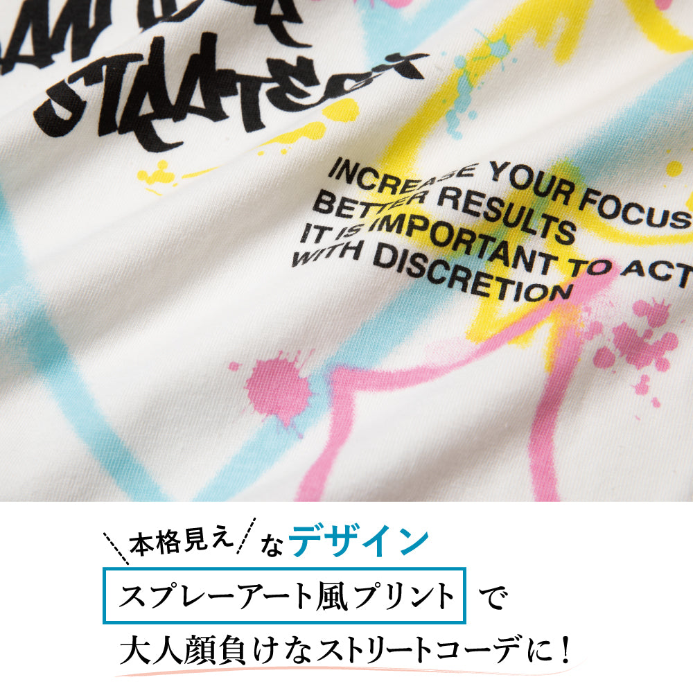 あなたはどっち派?!「クール」「キュート」な選べる2デザイン。本格見えなスプレーアート風プリントで大人顔負けなストリートコーデに!