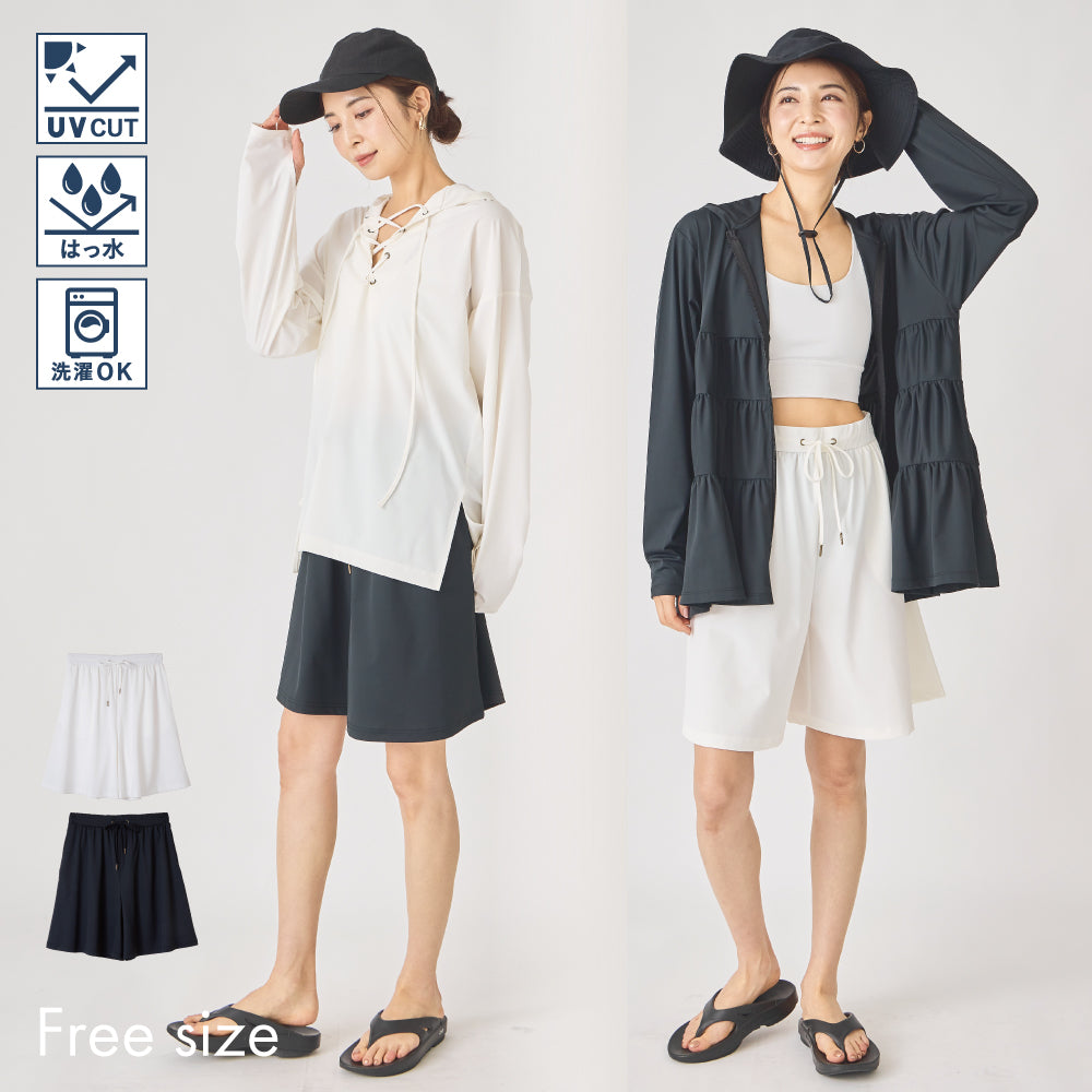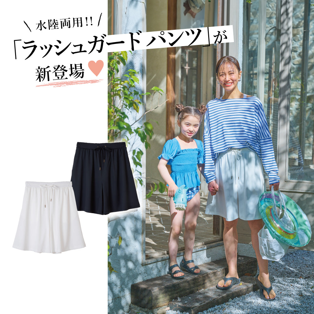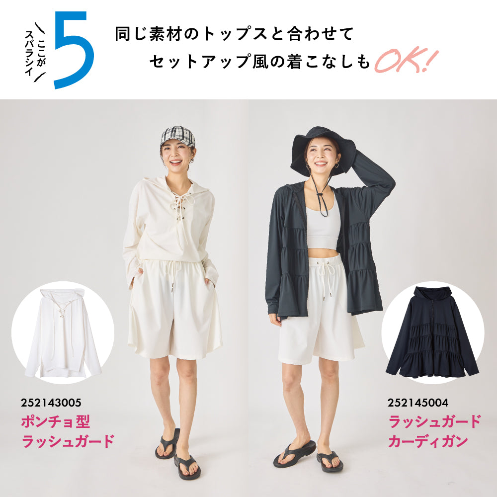 同じ素材の「252143005 ポンチョ型ラッシュガード」や「252145004 ラッシュガード カーディガン」と合わせてセットアップ風の着こなしも◎