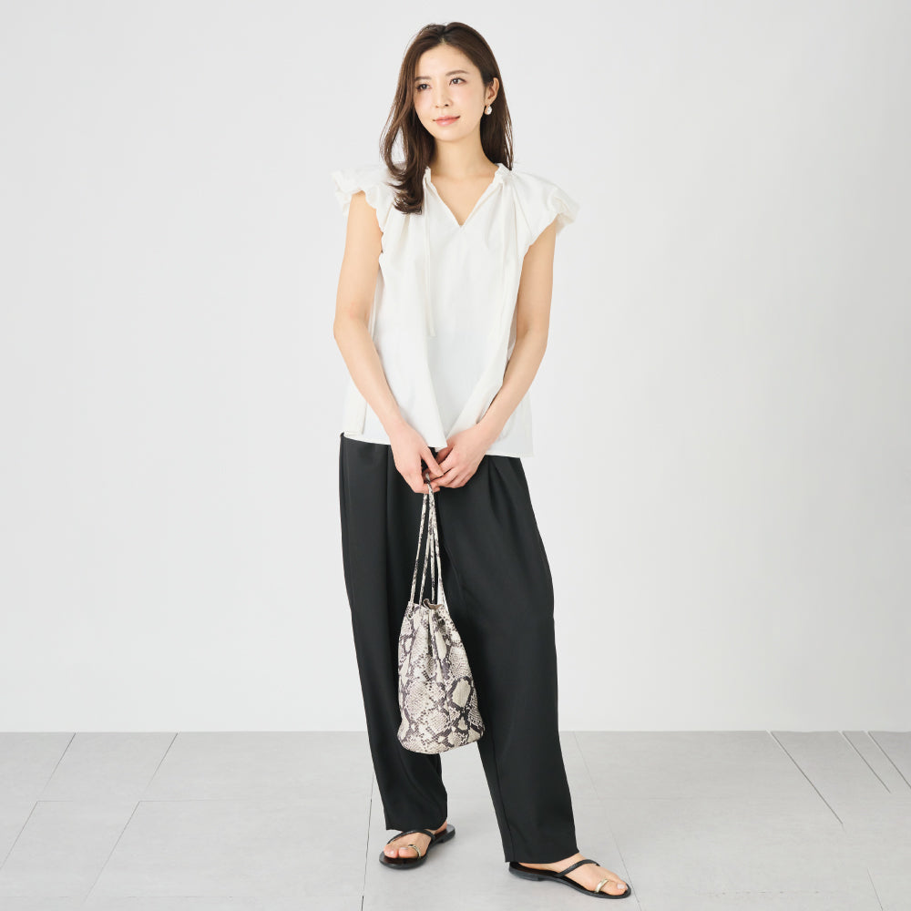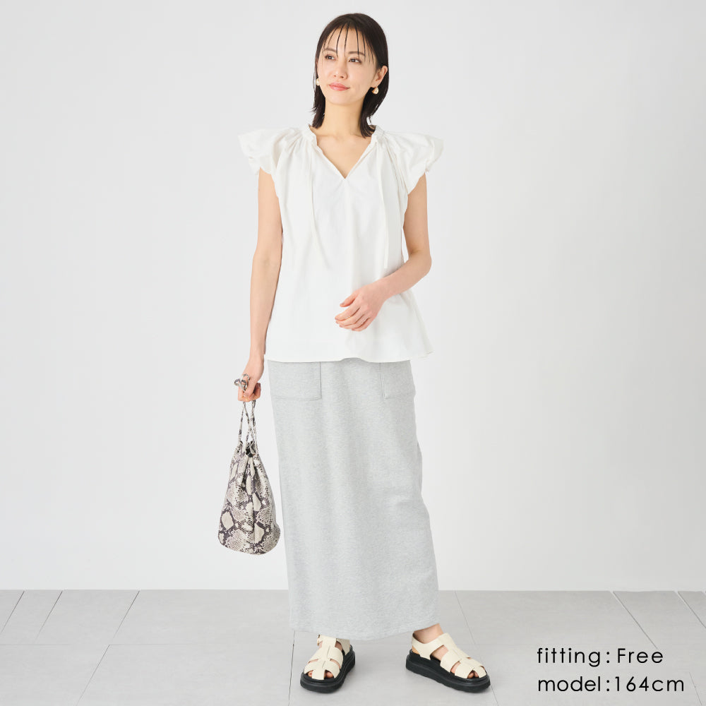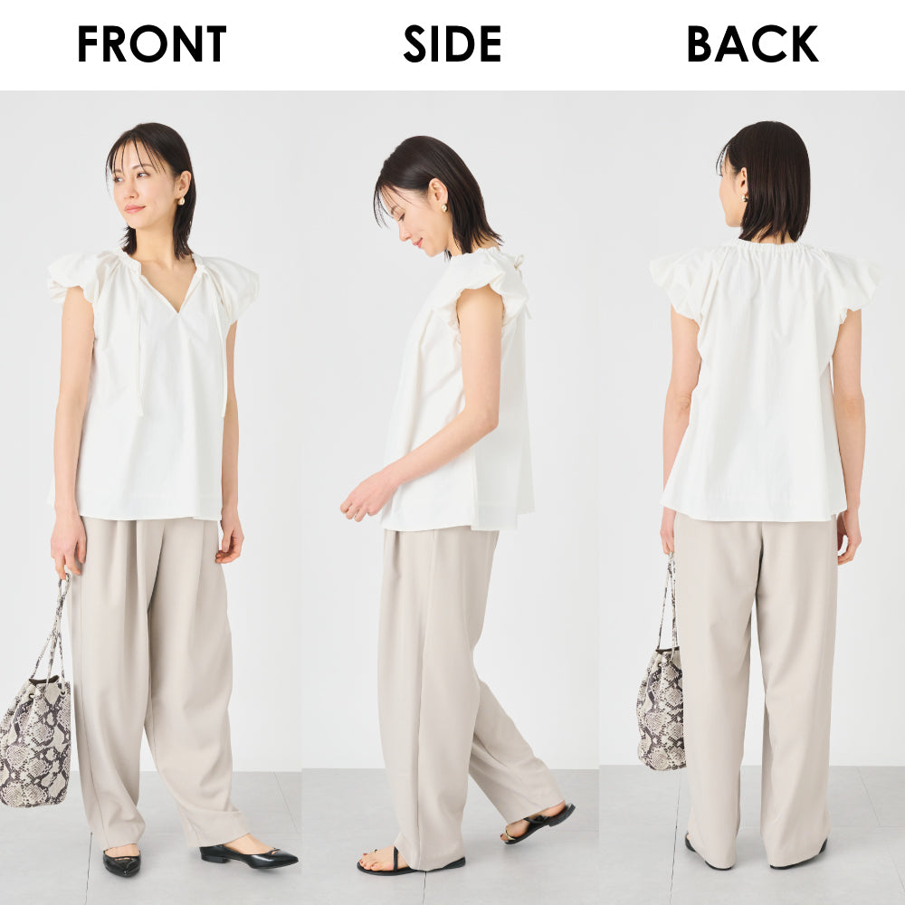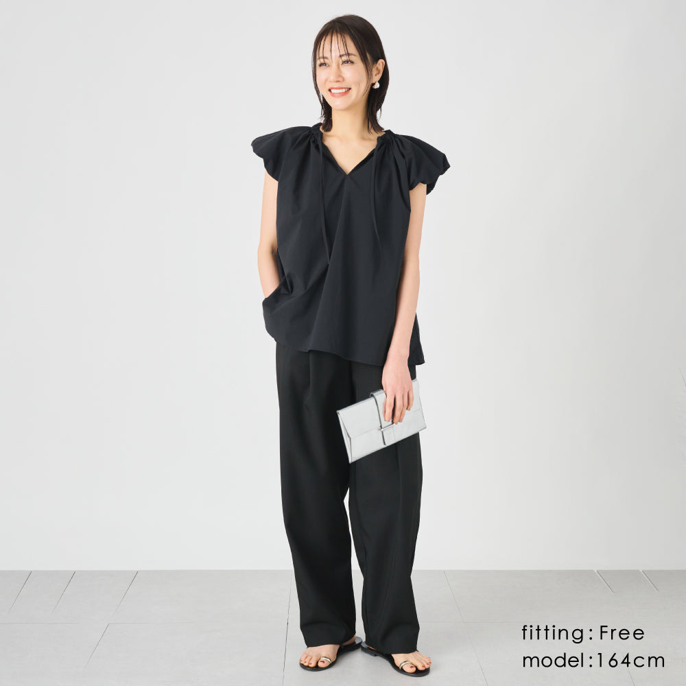 パフスリーブが肩にかかるデザインなので腕周りがすっきり見えるのも嬉しいポイント!体型カバーが叶います。