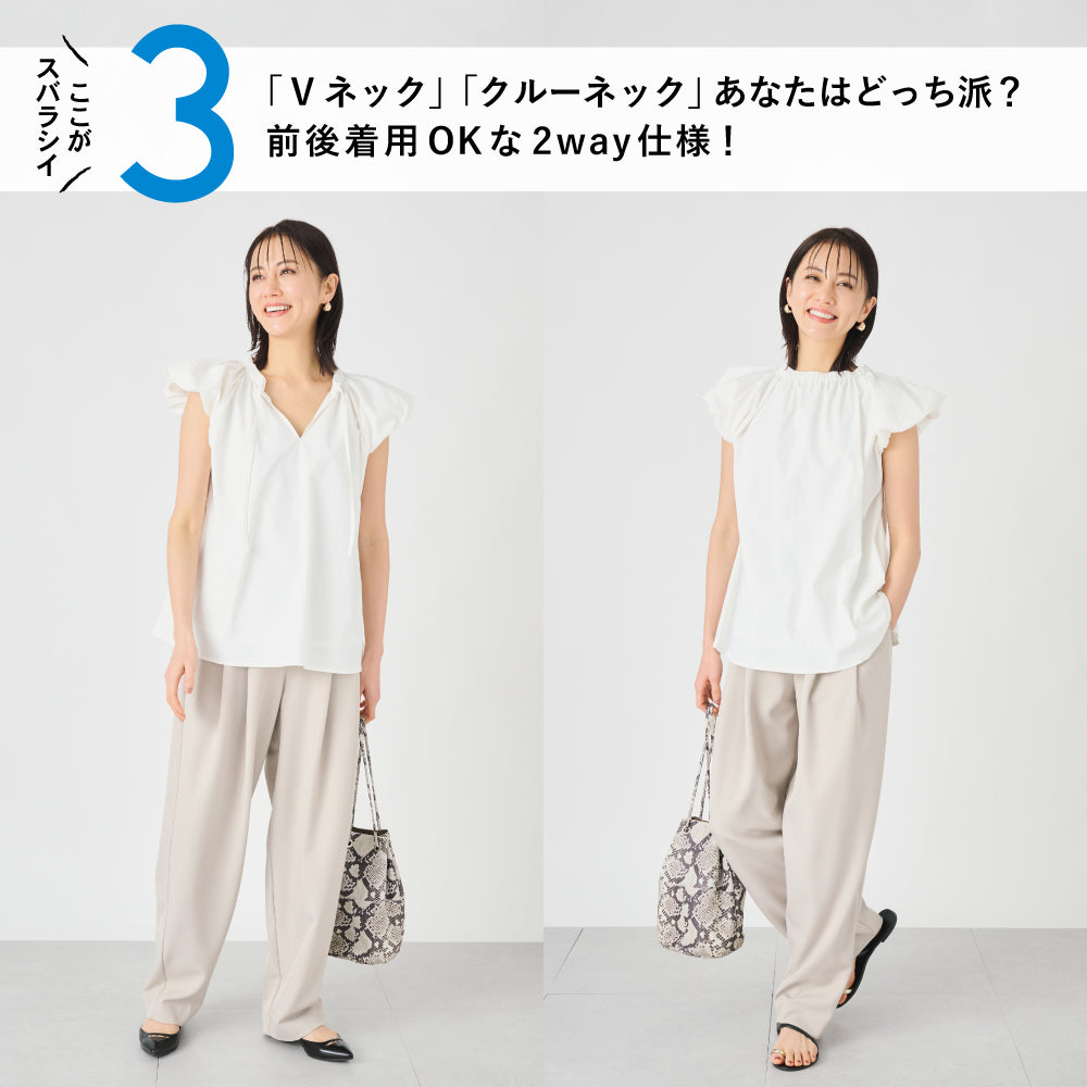 首元がすっきりと見えるキレイめな「Vネック」。前後逆にして「クルーネック」としても着用OK!2way仕様で2倍楽しめます♪