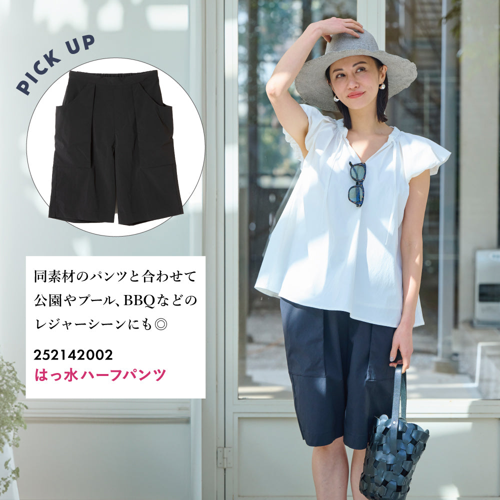 同素材のパンツ「252142002 はっ水ハーフパンツ」と合わせて公園やプール、BBQなどのレジャーシーンにも◎