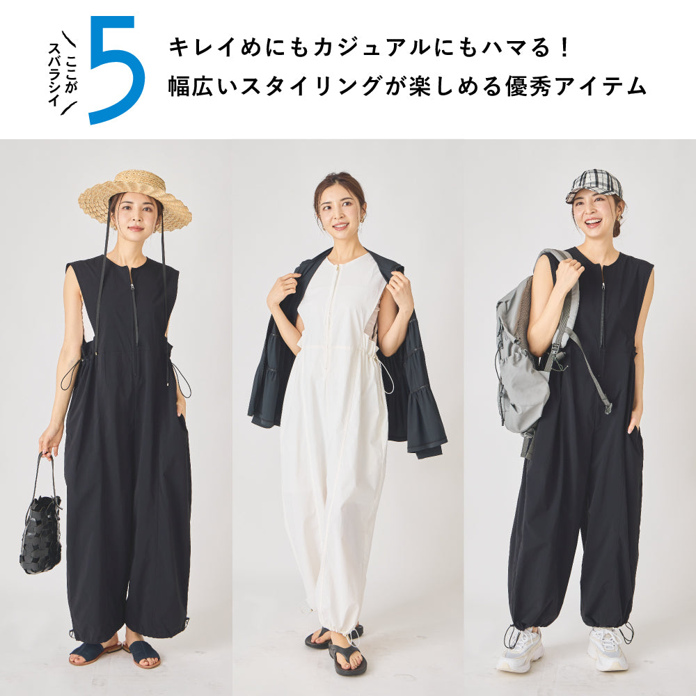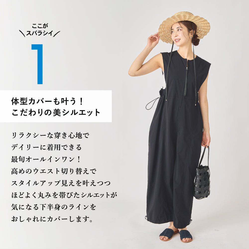こだわりの美シルエットで体型カバーも叶う♪リラクシーな穿き心地でデイリーに着用できる最旬オールインワン。