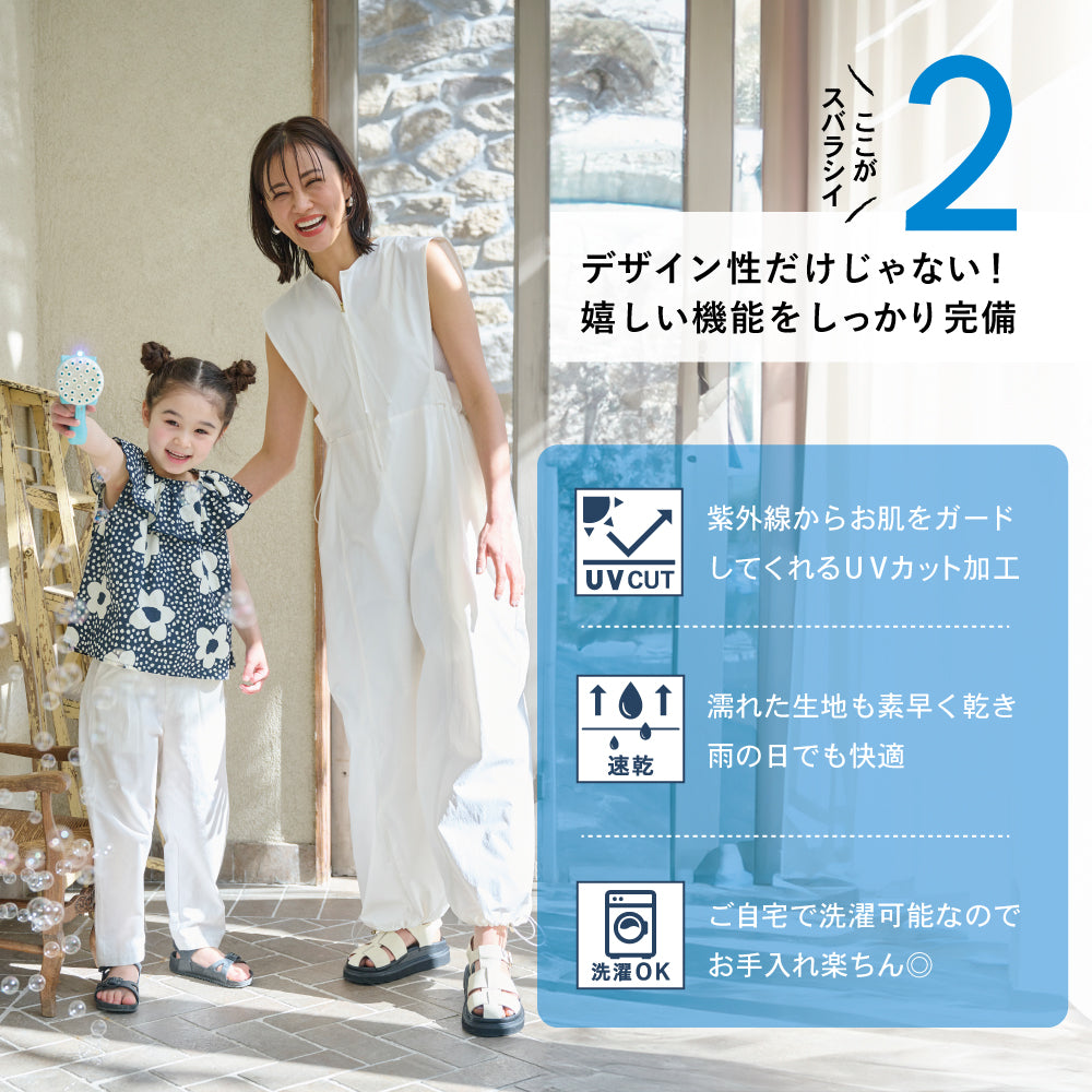 さらっと着れて、はっすい加工の素材なので、夏の子供とのお出かけに活躍してくれそうです。ウエストも絞れてスタイルよく見えます。